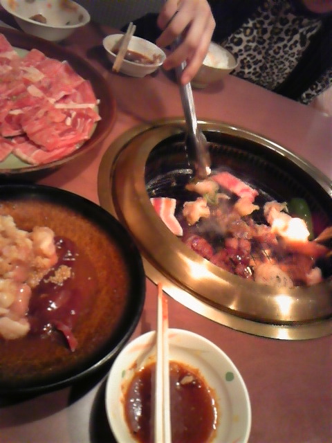 夕方から布を見に行って、夜ご飯に焼肉食べましたー!網の上が赤壁(火柱的な意味で)