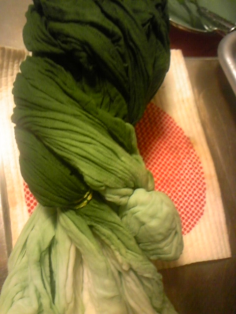変な替え唄作ってフンフン唄いながら買い置きしてたダブルガーゼをいつもの調子で染めてたら