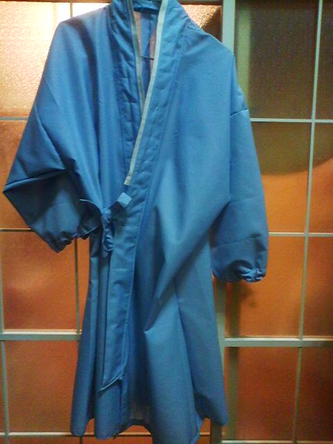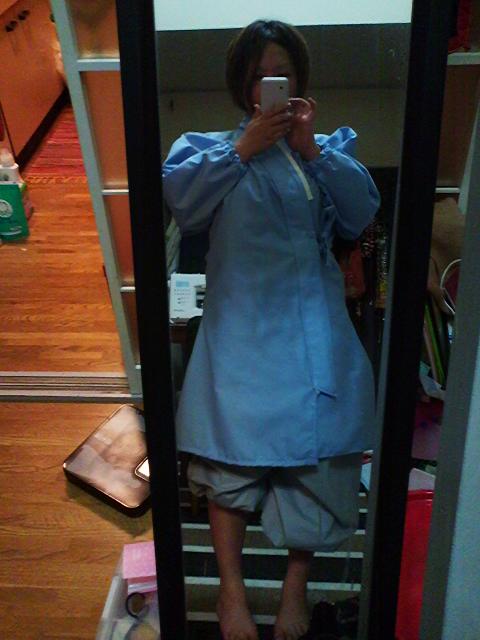 作務衣の型紙で作って、一人で着替えやすい様に袖口をゴムで絞ってみたらすっごいダサい事になった!篭手で隠れるから我慢だわたし