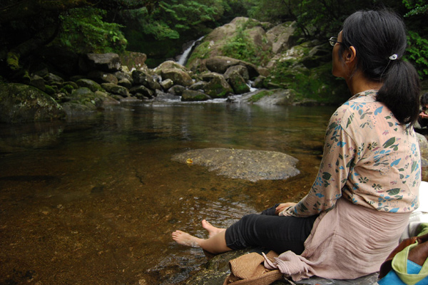 登山口で合流した後に渓流で休憩しました。疲れた足に心地好い…渓流すげぇ。
