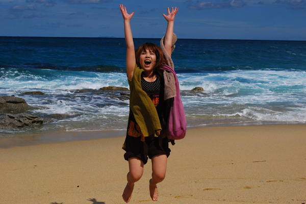 海で大はしゃぎする三十路をペタリ