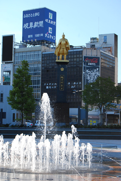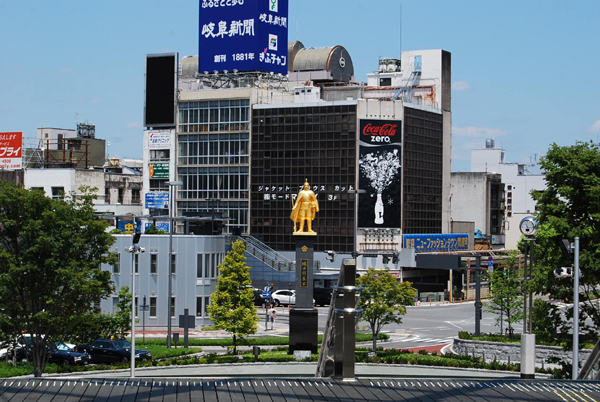 JR岐阜駅。金ピカの信長さま!