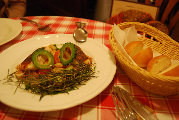 メインの魚料理とパン